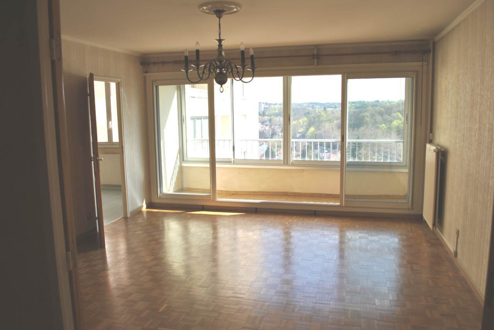 SAINTE FOY LES LYON : EXCLUSIVITE T3 de 72m² environ au 5ème étage avec ascenseur, orienté sud-est. Cuisine entièrement équipée (meubles et électroménager) donnant sur loggia fermée, séjour avec accès balcon à la vue dégagée, 2 chambres dont 1 de 17m², cave. Résidence avec piscine et tennis dans un environnement verdoyant. Tous les commodités et plusieurs lignes de bus sont à quelques pas. Charges mensuelles 200 euros par mois (électricité et entretien des communs, chauffage, eau chaude et froide, gardien, ascenseur, piscine, tennis espaces verts...).Copropriété de 76 lots. DPE : E. 143 000 euros (+ possibilité garage).