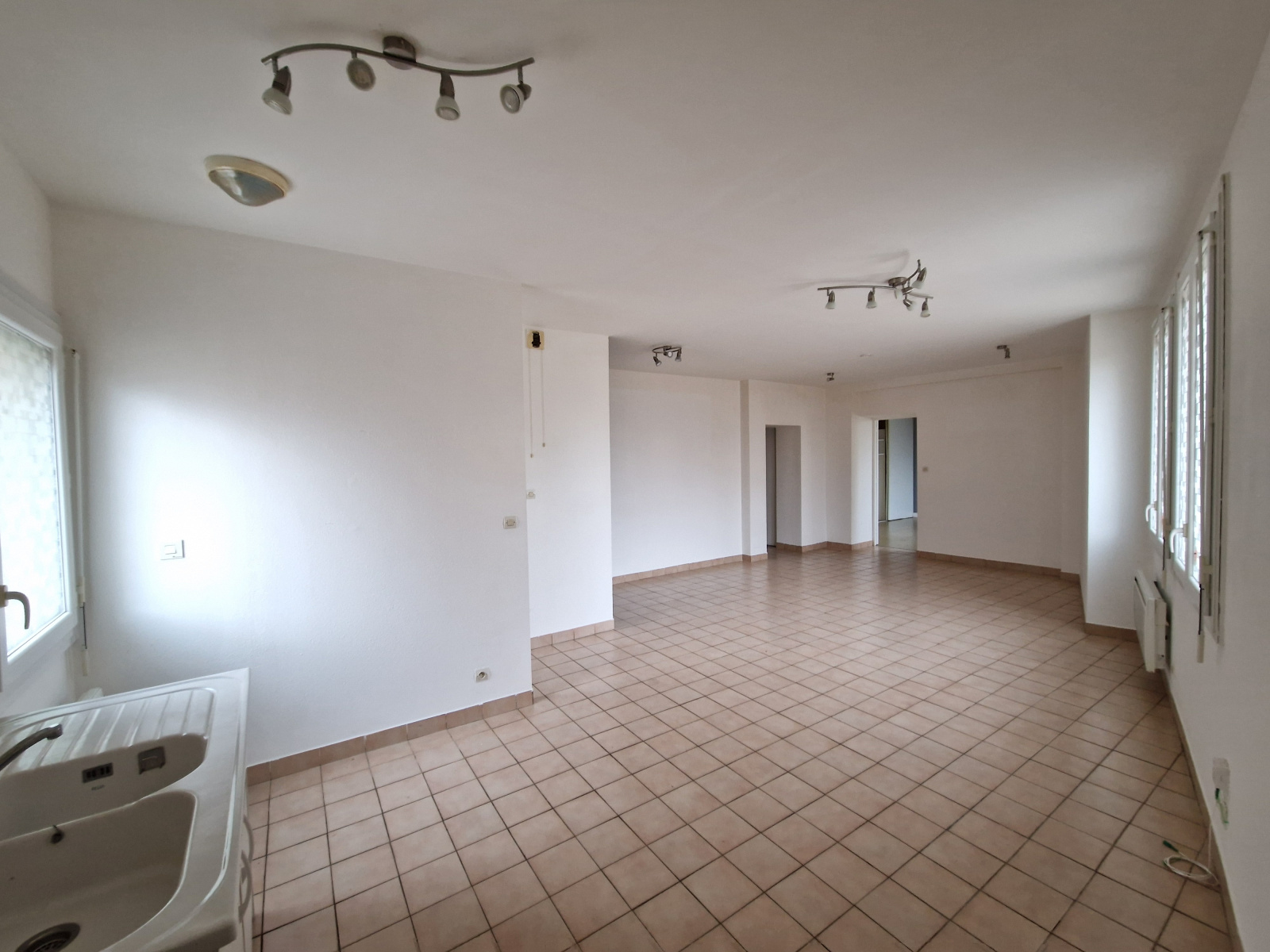 Grand appartement T3 de 80 m² habitables, au rez-de-chaussée, orienté SUD et OUEST comprenant :